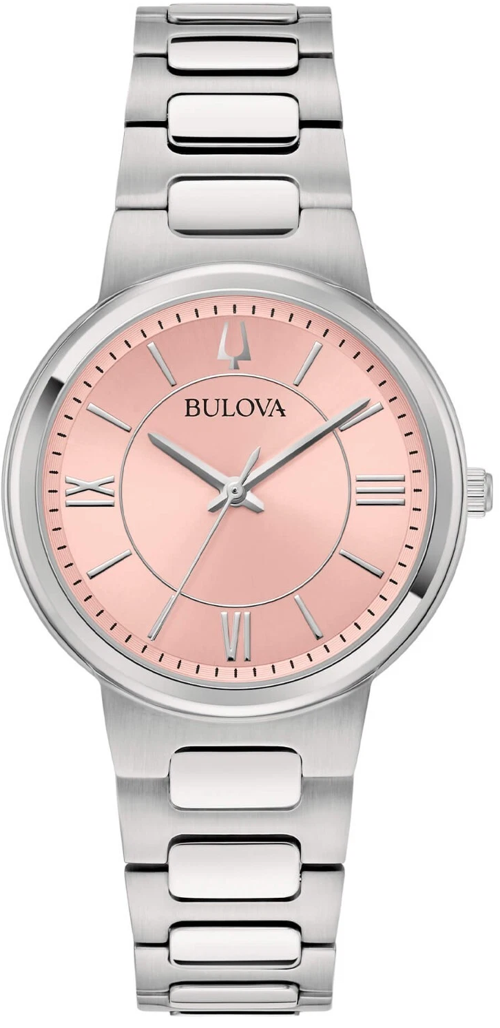 Màu mặt số: Hồng. Chất liệu vỏ: Thép không gỉ. Chất liệu dây đeo: Thép không gỉ. Màu dây đeo: Thép. Đường kính vỏ: 32mm. Khóa: Khóa gập. Bộ máy: Thạch anh. Khả năng chống nước: 3 Bar (30 mét). Mặt kính: Khoáng chất. Độ dày vỏ: 7mm