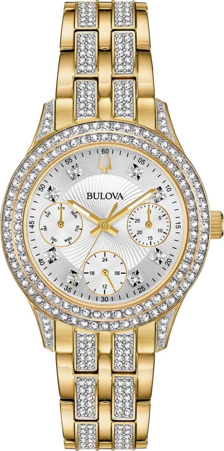 Bulova Crystal Silver Dial Ladies Watch 33mm