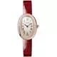 Thiết kế năm 1912 của chiếc đồng hồ sau này được đặt tên là "Baignoire" đã chứng minh được tài năng của Cartier trong việc chế tác hình dạng đồng hồ. Một hình elip thanh lịch được rèn độc đáo trên một đường thẳng duy nhất, chiếc đồng hồ "Baignoire" là tinh hoa của phong cách Cartier: sự kết hợp không gì sánh bằng giữa sự thuần khiết và sự sang trọng vượt thời gian. Đồng hồ Baignoire de Cartier. Mẫu nhỏ. Bộ máy thạch anh. Vỏ bằng vàng hồng 18K (750/1000) được đính 42 viên kim cương cắt sáng bóng với tổng trọng lượng 0,48 carat. Núm vặn bằng vàng hồng 750/1000 đính hạt với một viên kim cương cabochon tổng trọng lượng 0,08 carat. Mặt số màu bạc. Kim hình thanh kiếm bằng thép xanh. Tinh thể sapphire. Dây đeo bằng da cá sấu đỏ đánh vecni. Khóa ardillon bằng vàng hồng 750/1000. Chiều dài: 31,4 mm. Chiều rộng: 23,09 mm. Độ dày: 6,95 mm. Chống nước lên đến 3 bar (khoảng 30 mét)