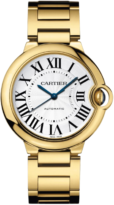 Nổi bật như một quả bóng bay và mang sắc xanh lam như viên đá cabochon được đặt chắc chắn bên hông, chiếc đồng hồ Ballon Bleu của Cartier mang đến nét thanh lịch cho cả cổ tay nam và nữ. Các chữ số La Mã được dẫn dắt bởi cơ chế lên dây cót màu xanh lam đậm. Với những đường cong lồi của vỏ, mặt số guilloché, kim hình thanh kiếm và các mắt xích được đánh bóng hoặc hoàn thiện bằng satin của dây đeo... chiếc đồng hồ Ballon Bleu của Cartier lướt nhẹ qua thế giới chế tác đồng hồ Cartier. Đồng hồ Ballon Bleu de Cartier 36 mm. Bộ máy cơ tự động lên dây cót. Vỏ vàng vàng 750/1000 và núm vặn khía được đính đá sapphire cabochon. Mặt số guilloché bạc. Kim hình thanh kiếm bằng thép xanh. Mặt kính sapphire. Dây đeo vàng vàng 750/1000 có thể thay đổi. Độ dày vỏ: 12,06 mm. Khả năng chống nước lên đến 3 bar (khoảng 30 mét/100 feet)