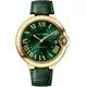 Với đồng hồ Ballon Bleu, Cartier mang đến một tầm nhìn độc đáo về sự tròn trịa, tất cả các đường cong và sự hài hòa. Một biểu tượng đồng hồ vượt thời gian với sự tròn trịa thanh lịch ôm lấy làn da. Đồng hồ Ballon Bleu de Cartier, 40 mm, bộ máy cơ tự động lên dây cót, cỡ nòng 1847 MC. Vỏ vàng vàng 18K (750/1000), núm vặn vàng vàng 18K (750/1000) có khía đính đá sapphire cabochon, mặt số tia nắng xanh lá cây, kim hình thanh kiếm bằng thép mạ vàng. Mặt kính sapphire. Dây đeo bằng da cá sấu xanh lá cây có thể thay đổi, khóa gập vàng vàng 18K (750/1000) có thể thay đổi, cửa sổ lịch ở vị trí 3 giờ. Độ dày: 12,4 mm. Khả năng chống nước lên đến 3 bar (khoảng 30 mét/100 feet).