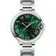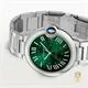 Với đồng hồ Ballon Bleu, Cartier mang đến một tầm nhìn độc đáo về sự tròn trịa, những đường cong và sự hài hòa. Một biểu tượng đồng hồ vượt thời gian với vẻ tròn trịa thanh lịch ôm trọn làn da. Đồng hồ Ballon Bleu de Cartier 40 mm. Bộ máy cơ tự động lên dây cót. Vỏ máy Calibre 1847 Mc. Steel. Núm vặn thép khía rãnh đính đá spinel tổng hợp hình cabochon. Mặt số xanh lá cây đậm chải tia mặt trời. Kim hình thanh kiếm mạ bạc. Mặt kính sapphire. Hai dây đeo bằng da và thép có thể thay đổi. Cửa sổ lịch ở vị trí 3 giờ. Độ dày: 12,4 mm. Khả năng chống nước lên đến 3 bar (khoảng 30 mét)