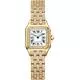 Được thiết kế vào những năm 1980, đồng hồ Panthère de Cartier lấy tên từ chiếc vòng tay cùng tên. Cấu trúc siêu linh hoạt của nó mô phỏng chuyển động của loài động vật biểu tượng của Maison. Vừa là đồng hồ vừa là món đồ trang sức, đây thực sự là biểu tượng thời trang dành cho phụ nữ có phong cách táo bạo. KÍCH THƯỚC 30,3 mm x 22,0 mm. Đồng hồ Panthère de Cartier, mẫu nhỏ, bộ máy thạch anh. Vỏ vàng vàng 18K (750/1000) đính 36 viên kim cương cắt sáng rực rỡ tổng cộng 0,25 carat. Kích thước: 30,3 mm x 22 mm, độ dày: 6,05 mm. Núm vặn hình bát giác bằng vàng vàng 18K (750/1000) đính một viên kim cương cắt sáng rực rỡ tổng cộng 0,02 carat. Mặt số màu bạc, kim hình thanh kiếm bằng thép xanh. Vòng tay vàng vàng 18K (750/1000), đính bán phần 142 viên kim cương cắt brilliant, tổng cộng 1,29 carat. Khả năng chống nước lên đến 3 bar (khoảng 30 mét/100 feet).