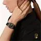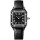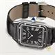 Năm 1904, Louis Cartier đã hiện thực hóa mong ước của phi công nổi tiếng người Brazil Alberto Santos Dumont: có thể xem giờ khi đang bay. Sự ra đời của một trong những chiếc đồng hồ đeo tay đầu tiên đã gắn kết tình bạn giữa hai người tiên phong này. Các góc bo tròn của mặt số, đường cong liền mạch của sừng và các ốc vít lộ ra đã tạo nên một chiếc đồng hồ mang tính biểu tượng, truyền cảm hứng cho vô số phiên bản cải tiến. Đồng hồ Santos-Dumont, mẫu lớn, Bộ máy cơ lên dây cót bằng tay. DỰ TRỮ NĂNG LƯỢNG 38 GIỜ, cỡ nòng 430 MC. Vỏ thép phủ sơn mài đen, núm vặn bằng thép đính hạt đính đá spinel tổng hợp màu xanh lam, mặt số trang trí hình vuông màu đen phủ sơn mài trong mờ, số La Mã, kim hình thanh kiếm bằng thép, mặt kính sapphire. Mặt sau vỏ được khắc chữ ký viết tay của Alberto Santos-Dumont. Dây đeo bằng da cá sấu đen, khóa ardillon bằng thép. Kích thước vỏ: 43,5 mm x 31,4 mm, độ dày: 7,3 mm. Khả năng chống nước lên đến 3 bar (khoảng 30 mét/100 feet).