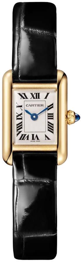 Được Louis Cartier thiết kế vào năm 1917, đồng hồ Tank là một biểu tượng của ngành chế tác đồng hồ hiện đại. Thiết kế thanh lịch của chiếc đồng hồ đeo tay này, kết hợp giữa hình học và tỷ lệ chính xác, đã định hình nên bản sắc mạnh mẽ của nó. Dễ dàng nhận biết và luôn bắt kịp thời đại, Tank đã được tái hiện trong hơn một thế kỷ với nhiều phiên bản khác nhau nhưng vẫn trung thành với tinh thần của thiết kế ban đầu: Tank Cintrée, Tank Chinoise, Tank Américaine, Tank Française... Phiên bản Mini. Bộ máy thạch anh. Vỏ bằng vàng 18K (750/1000). Núm vặn đính đá sapphire. Mặt số màu bạc vân sần. Kim chỉ giờ và phút hình kiếm bằng thép xanh. Mặt kính khoáng. Dây đeo bằng da cá sấu đen bóng. Khóa cài ardillon bằng vàng 18K (750/1000). Kích thước vỏ: 24 mm x 16,5 mm. Độ dày: 6,2 mm. Chống nước đến 3 bar (khoảng 30 mét/100 feet)