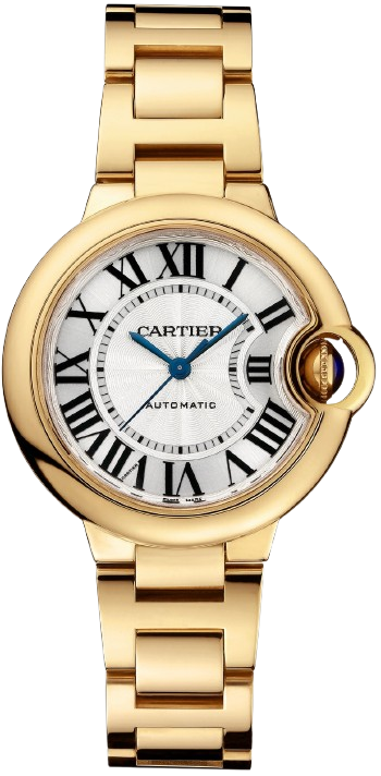 Nổi bật như một quả bóng bay và mang sắc xanh lam như viên đá cabochon được đặt an toàn bên hông, chiếc đồng hồ Ballon Bleu của Cartier mang đến nét thanh lịch cho cả cổ tay nam và nữ. Các chữ số La Mã được dẫn dắt bởi cơ chế lên dây cót màu xanh lam đậm. Với những đường cong lồi của vỏ, mặt số guilloché, kim hình thanh kiếm và các mắt xích được đánh bóng hoặc hoàn thiện bằng satin của dây đeo... chiếc đồng hồ Ballon Bleu của Cartier lướt nhẹ qua thế giới chế tác đồng hồ Cartier. Đồng hồ Ballon Bleu de Cartier 33 mm. Bộ máy cơ tự động lên dây cót. Vỏ vàng vàng 750/1000 và núm vặn khía rãnh được đính đá sapphire cabochon. Mặt số guilloché bạc. Kim hình thanh kiếm bằng thép xanh. Mặt kính sapphire. Dây đeo vàng vàng 750/1000 có thể thay đổi. Độ dày vỏ: 10,16 mm. Khả năng chống nước lên đến 3 bar (khoảng 30 mét/100 feet)