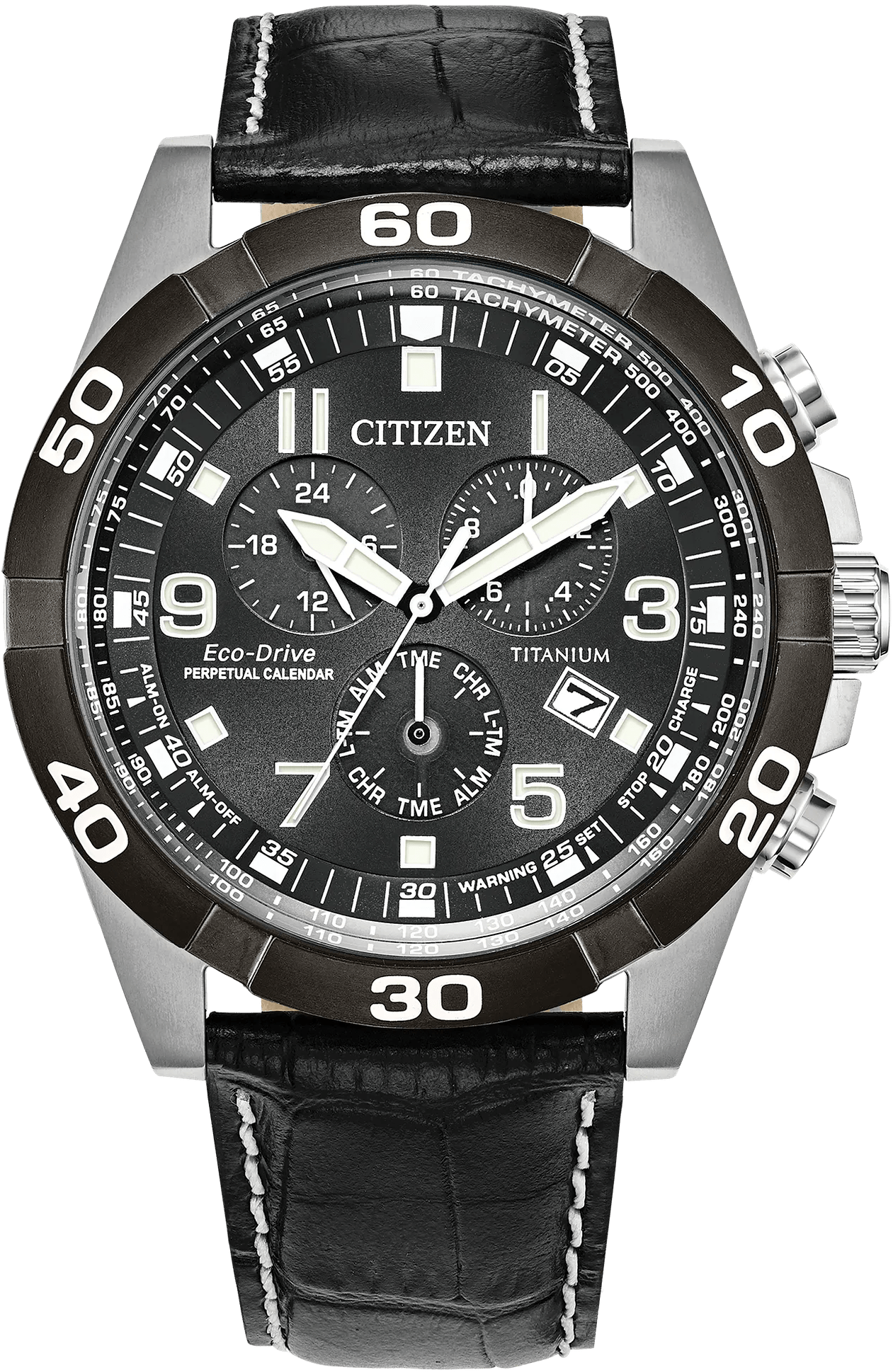 Với dây đeo da đen, vỏ Super Titanium™ và mặt số xám, Brycen của Citizen chắc chắn sẽ thu hút mọi ánh nhìn. Chiếc đồng hồ nam thường ngày này sở hữu chức năng bấm giờ, lịch vạn niên, hai múi giờ, chế độ 12 và 24 giờ, báo thức và hiển thị ngày. Đồng hồ còn được cung cấp năng lượng bởi ánh sáng với công nghệ Eco-Drive, mang đến một chiếc đồng hồ vừa thiết thực vừa cổ điển, luôn hợp thời trang. Với dây đeo bằng da màu đen, vỏ Super Titanium™ và mặt số màu xám, Brycen từ Citizen chắc chắn sẽ thu hút mọi ánh nhìn. Chiếc đồng hồ nam thường ngày này có chức năng bấm giờ, lịch vạn niên, hai múi giờ, tùy chọn 12 và 24 giờ, báo thức và ngày. Đồng hồ cũng được cung cấp năng lượng bằng ánh sáng sử dụng công nghệ Eco-Drive, mang đến chiếc đồng hồ thiết thực và cổ điển, luôn hợp thời trang. Mặt số Kim và vạch chỉ giờ phát sáng màu xám. Vỏ 43 mm Super Titanium tông bạc. Càng 22 mm. Dây đeo bằng da. Khóa pha lê. Pha lê khoáng Chống va đập và vỡ. Chống nước WR100/10Bar/333ft [Bơi lội, Tắm vòi sen & Lặn với ống thở]. Trọng lượng (g) 62,37. Bộ máy E820 Eco-Drive Được cung cấp năng lượng bởi bất kỳ nguồn sáng nào, liên tục và bền vững, loại bỏ nhu cầu thay pin đồng hồ. Chức năng Đồng hồ bấm giờ 1/20 giây Đo tối đa 60 phút, Lịch vạn niên, Giờ kép (Múi giờ thứ hai), Giờ 12/24 giờ, Báo thức, Ngày