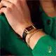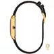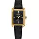 Vỏ thép không gỉ tông vàng với dây đeo bằng da màu đen. Vành thép không gỉ tông vàng cố định. Mặt số màu đen với kim và vạch chỉ giờ màu vàng. Kiểu mặt số: Analog. Bộ máy Citizen Caliber Eco-Drive E031 eco-drive. Mặt kính khoáng chống trầy xước. Núm vặn dạng kéo/đẩy. Nắp lưng chắc chắn. Kiểu dáng vỏ hình chữ nhật, kích thước vỏ: 23,5 x 35 mm, độ dày vỏ: 8 mm. Khóa cài. Khả năng chống nước ở độ sâu 30 mét / 100 feet. Chức năng: giờ, phút, giây, năng lượng mặt trời.