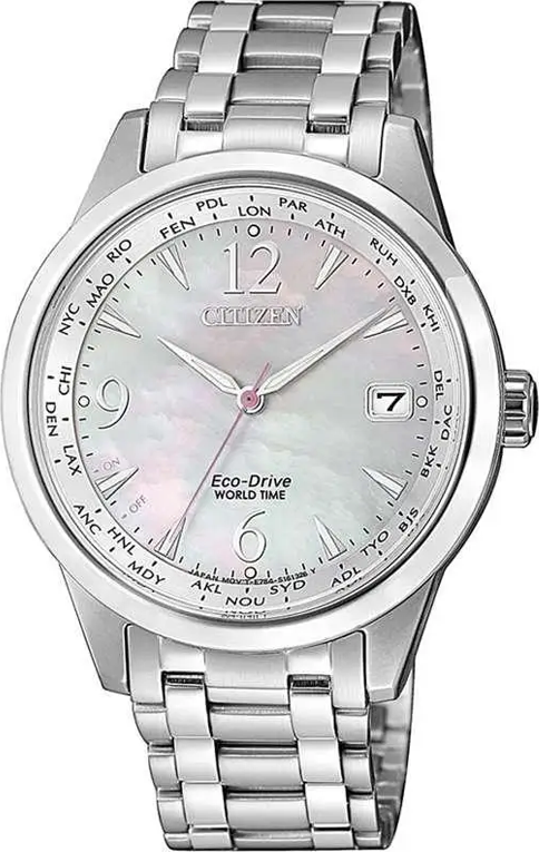 Citizen FC8001-87D World Time Mother Of Pearl Watch 35.8mm