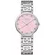 Về thương hiệu: Sang trọng, tinh tế và đẳng cấp Ý. Bộ máy Quartz Thụy Sĩ. Dây đeo bằng thép không gỉ màu bạc. Khóa gập. Vành thép không gỉ đính kim cương. Vỏ thép không gỉ. Mặt kính sapphire. Núm vặn dạng đẩy. Mặt số màu hồng. Vỏ: 29mm x 7,45mm. Dây đeo: Rộng 15mm x Dài 6,7in. Khả năng chống nước lên đến 30 mét.