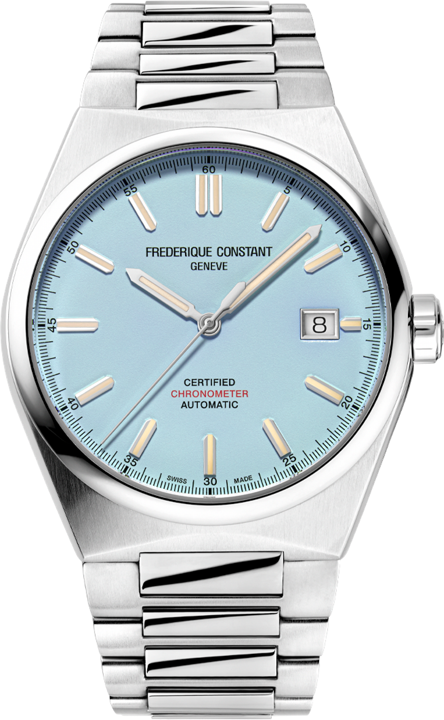 Đồng hồ Highlife Automatic COSC được thiết kế để sử dụng hàng ngày và có nhiều biến thể mặt số và vỏ. Hiện có sẵn với kích thước vỏ unisex 39mm mới, được chế tác từ vỏ thép không gỉ 3 phần chải và đánh bóng, với mặt số màu xanh nhạt, vạch chỉ giờ mạ vàng đầu bạc và kim giờ, phút, giây được đánh bóng thủ công. Bao gồm thêm một dây đeo cao su màu xanh nhạt có thể thay nhanh. Bộ máy FC-303. Công nghệ bộ máy Tự động. Quốc gia Thụy Sĩ. Bộ máy FC-303. Công nghệ bộ máy Tự động. Mô tả bộ máy. Được cung cấp năng lượng bởi sự giải phóng của lò xo đã lên dây, bộ máy cơ học không bao giờ cần pin. Bộ máy cơ tự động có một quả tạ dao động để lên dây cót bằng chuyển động của cánh tay người đeo. Chức năng Giờ, Phút, Giây, Ngày, Dự trữ năng lượng 38 giờ. Quốc gia Thụy Sĩ. Màu vỏ Bạc. Hình dạng vỏ Tròn. Chất liệu vỏ Thép không gỉ. Chiều dài vỏ 39. Độ dày vỏ 10.34. Chiều rộng càng dây (mm): 24. Khả năng chống nước: WR100/10Bar/333ft [Bơi lội, tắm vòi sen & lặn biển]. Màu mặt số: Xanh lam nhạt. Chất liệu mặt số: Đồng thau. Mặt kính: Kính sapphire chống phản quang. Mô tả mặt kính: Chống va đập và vỡ - lớp phủ chống phản quang giúp phản xạ ánh sáng. Loại dây đeo: Vòng tay. Chất liệu dây đeo: Thép không gỉ. Màu dây đeo: Bạc. Loại khóa: Khóa gập với nút bấm.