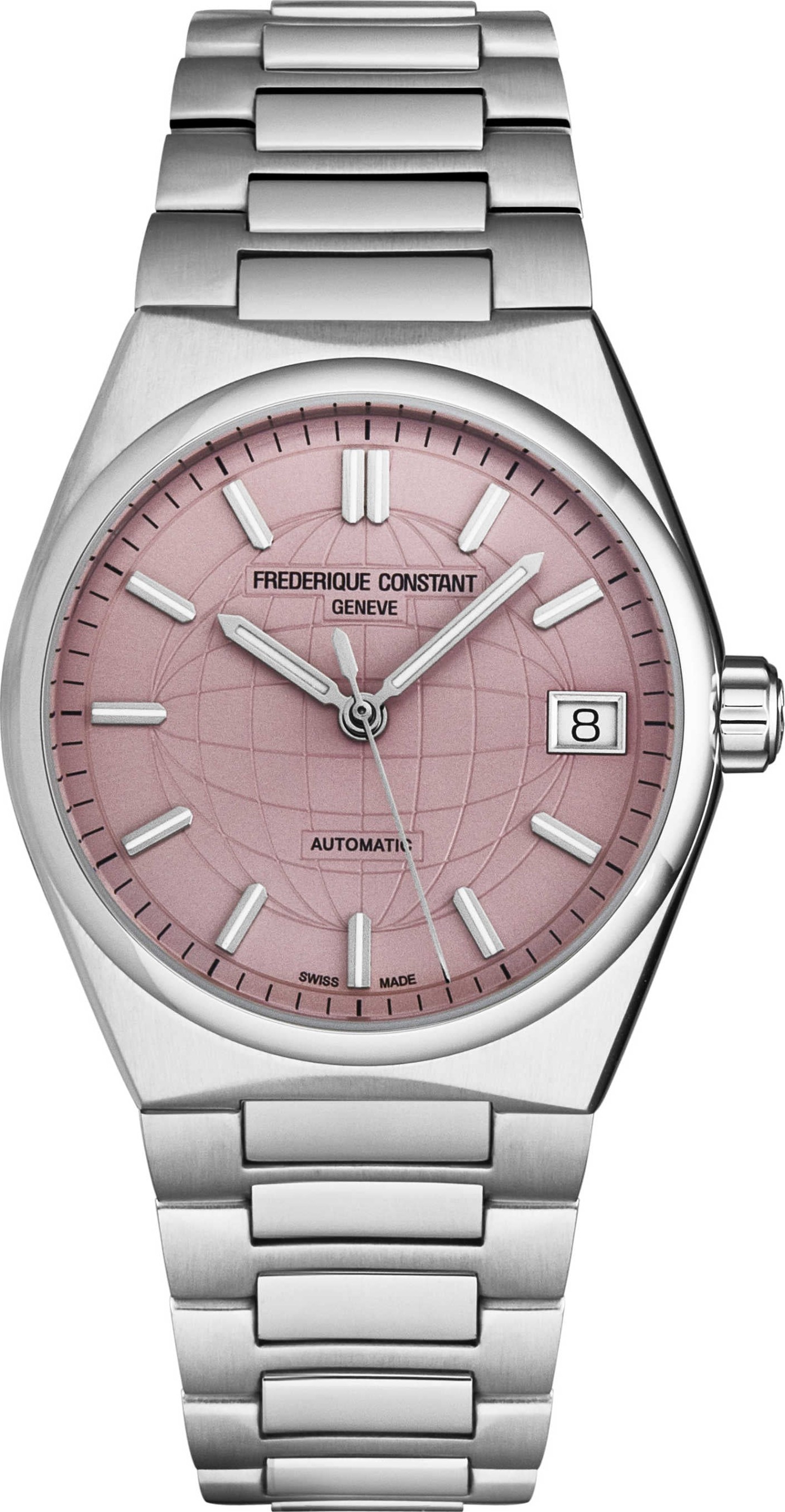 Highlife Ladies Automatic là sự cân bằng hoàn hảo giữa cổ điển, thể thao và hiện đại. Vỏ thép không gỉ 34mm có quả địa cầu nổi trên mặt số màu hồng nhạt, chơi đùa với nhiều sắc thái ánh sáng và cửa sổ ngày ở vị trí 3 giờ. Chiếc đồng hồ này có thể được tùy chỉnh bằng cách đổi vòng đeo tay bằng thép không gỉ nguyên bản thành dây cao su màu trắng đi kèm với đồng hồ. Bộ máy FC-303. Công nghệ bộ máy Tự động. Quốc gia Thụy Sĩ. Bộ máy FC-303 Công nghệ bộ máy Tự động Mô tả bộ máy Được cung cấp năng lượng bởi sự giải phóng của lò xo lên dây, bộ máy cơ học không bao giờ cần pin. Bộ máy cơ học tự động có trọng lượng dao động lên dây cót bằng chuyển động của cánh tay người đeo. Giờ, Phút, Giây, Ngày, Dự trữ năng lượng 38 giờ. Quốc gia Thụy Sĩ. Màu vỏ Tông bạc. Hình dạng vỏ Tròn. Chất liệu vỏ Thép không gỉ. Chiều dài vỏ 34. Độ dày vỏ 9,67. Chiều rộng vấu (mm) 21,5. WR50/5Bar/166ft [Bơi trong nước tĩnh]. Màu mặt số Hồng. Chất liệu mặt số Đồng thau. Các chỉ số đặc trưng trên mặt số; Kim dạ quang; Vạch chỉ giờ dạ quang. Mặt kính Sapphire chống phản quang. Chống va đập và vỡ - lớp phủ chống phản quang làm lệch hướng ánh sáng. Kiểu dây đeo: Vòng đeo tay. Chất liệu dây đeo: Thép không gỉ. Dây đeo: Bạc. Kiểu khóa: Khóa gập có nút bấm.