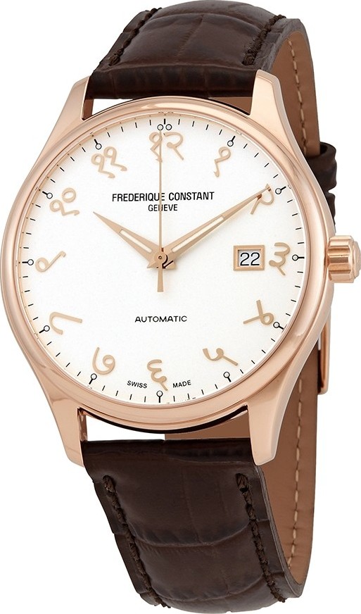 Vỏ thép không gỉ tông vàng hồng với dây đeo bằng da màu đen. Viền cố định bằng thép không gỉ tông vàng hồng. Mặt số màu trắng với kim màu vàng hồng và vạch số giờ Ả Rập. Điểm đánh dấu phút xung quanh vành ngoài. Kiểu quay số: analog. Bàn tay và điểm đánh dấu phát quang. Hiển thị ngày ở vị trí 3 giờ. Bộ máy tự động Frederique calibre fc-303 có khả năng dự trữ năng lượng trong 38 giờ. Tinh thể sapphire chống trầy xước. Kéo/đẩy vương miện. Hình dạng vỏ tròn. Kích thước vỏ: 40 mm. Móc khóa. Chống nước ở độ sâu 50 mét / 165 feet. Chức năng: ngày, giờ, phút, giây.