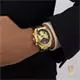 Phong cách ăn mặc nâng tầm kết hợp với sự thoải mái sáng tạo! Chiếc đồng hồ đa chức năng tông màu đen và vàng này có vỏ thép tái chế tròn đánh bóng cỡ lớn 44 mm với vành bezel cạnh đồng xu nổi bật và mặt số đa chức năng màu đen tia nắng trông như đồng hồ bấm giờ. Dây đeo FLEX sáng tạo kết hợp lớp phủ da vân cá sấu màu đen trên đế silicon thoải mái với khóa cài dây đeo, mang đến sự kết hợp hoàn hảo giữa sự sang trọng và tính thực tế với khả năng bảo vệ mặt kính khoáng và khả năng chống nước ở độ sâu 50 mét. Đường kính vỏ 44 mm. Màu vỏ Tông vàng. Hình dạng vỏ Tròn. Chất liệu vỏ Thép tái chế. Hoàn thiện vỏ Đánh bóng. Chiều rộng dây đeo / Càng 25 mm. Màu dây đeo / Màu đen. Chất liệu dây đeo Silicone / Da thật. Khóa dây đeo Khóa dây đeo. Chống nước ở độ sâu 50 mét. Đồng hồ thạch anh tương tự. Màu mặt số Đen. Mặt kính pha lê Mặt kính khoáng