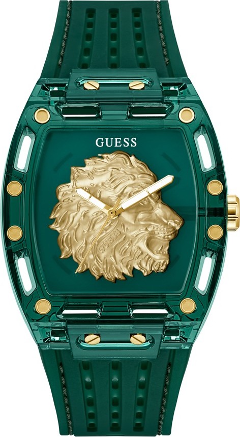 Hình bóng đặc trưng của chúng tôi kết hợp với logo sư tử bên hông mang tính biểu tượng của GUESS, tạo nên sự pha trộn mạnh mẽ giữa sức mạnh và sự tinh tế. Nó vừa phô trương vừa tinh tế — một biểu hiện táo bạo về cá tính và địa vị. Đây không chỉ là việc tạo ra một lối vào — mà là về việc sở hữu căn phòng. Chiếc đồng hồ analog màu xanh lá cây này có vỏ hình thùng cắt xuyên polycarbonate Signature Icon của chúng tôi với các chi tiết vít tông vàng trong cấu trúc polycarbonate sinh học màu xanh lá cây trong suốt cỡ lớn 43 mm x 42 mm. Mặt số màu xanh lá cây trong suốt làm nổi bật chi tiết sư tử tông vàng nổi bật và kết hợp hoàn hảo với các chi tiết đục lỗ trên dây đeo bằng silicon trong suốt màu xanh sữa và đường khâu phù hợp, chiếc đồng hồ sáng tạo này đại diện cho tương lai của thiết kế đồng hồ. Chiều rộng dây đeo / Càng 28 mm. Dây đeo / Màu xanh lá cây. Chất liệu dây đeo Silicone. Khóa dây đeo Khóa dây đeo. Chống nước đến 50 mét. Đồng hồ thạch anh Analog. Màu mặt số màu xanh lá cây. Mặt kính pha lê Đường cong đơn Nhựa