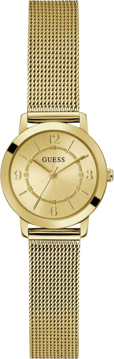 Dành cho Nữ, Bộ máy Quartz Analog, Màu mặt đồng hồ Champagne, Chất liệu vỏ Thép không gỉ, Kích thước vỏ 28 mm, Hình dạng vỏ Tròn, Khả năng chống nước ở độ sâu 30 m, Khóa dây đeo Khóa trượt, Chất liệu dây đeo Lưới, Màu dây đeo Vàng, Loại kính Kính khoáng.