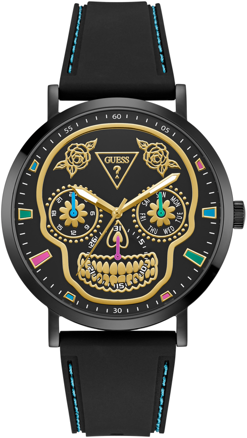 Guess Mens Day Of The Dead Black Multi-function Watch 44mm