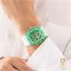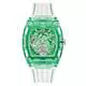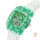Chi tiết mặt số Skeleton giữ vững vị thế của phượng hoàng. Kiểu dáng này nổi bật với vỏ polycarbonate cắt xuyên hình thùng với chi tiết vít và mặt số đa chức năng cắt xuyên kết hợp với dây đeo silicon với chi tiết đục lỗ! Đường kính vỏ 42 mm. Màu vỏ Xanh lá cây. Hình dạng vỏ Hình chữ nhật. Chất liệu vỏ Polycarbonate. Hoàn thiện vỏ Trong suốt. Chiều rộng dây đeo / càng 25 mm. Màu dây đeo / Màu trắng. Chất liệu dây đeo Silicone. Khóa dây đeo. Chống nước đến 50 mét. Bộ máy Quartz Analog. Bộ máy Quartz Analog hoạt động bằng pin. Bộ máy Quartz có độ chính xác cao, có khả năng đo thời gian chính xác đến từng mili giây mỗi ngày. Màu mặt số Xanh lá cây. Mặt kính pha lê Kính khoáng. Mặt số đa chức năng