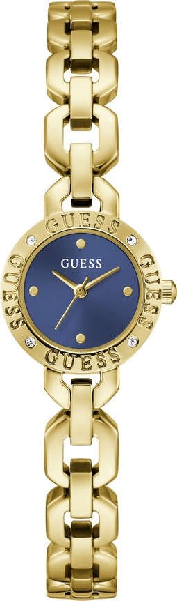 Siren: Một tia sáng nhỏ nhắn đầy phong cách. Nhỏ nhắn, tinh tế và không thể bỏ qua, Siren mang đến một vẻ quyến rũ mới cho kiểu dáng 23 mm. Vỏ mạ vàng sáng bóng với viền logo GUESS đính pha lê thu hút ánh nhìn về phía mặt số màu xanh đậm ánh nắng. Dây đeo mạ vàng đồng bộ hoàn thiện vẻ ngoài với các mắt xích thanh mảnh và các mắt xích G tự điều chỉnh tạo nên sự vừa vặn hoàn hảo. Lớp hoàn thiện tinh tế, bảng màu nhẹ nhàng và mặt số rạng rỡ kết hợp với nhau tạo nên sự cân bằng giữa nét duyên dáng và cá tính. Siren thể hiện cá tính riêng biệt với một chút tinh nghịch, tỏa sáng qua các điểm nhấn pha lê và các chi tiết mang tính biểu tượng. Tự tin, biểu cảm và đầy cá tính, chiếc đồng hồ nhỏ nhắn này là một món trang sức nổi bật được chế tác để tôn vinh mọi khoảnh khắc. Đường kính vỏ 23 mm. Màu vỏ: Vàng đồng. Hình dạng vỏ: Tròn. Chất liệu vỏ: Thép không gỉ. Hoàn thiện vỏ: Đánh bóng. Chiều rộng dây đeo/vấu: 10 mm. Màu dây đeo: Vàng đồng. Chất liệu dây đeo: Thép không gỉ. Khóa dây đeo: G-Link. Chống nước đến 30 mét. Máy: Thạch anh kim. Màu mặt số: Xanh dương. Mặt kính: Kính khoáng phẳng.
