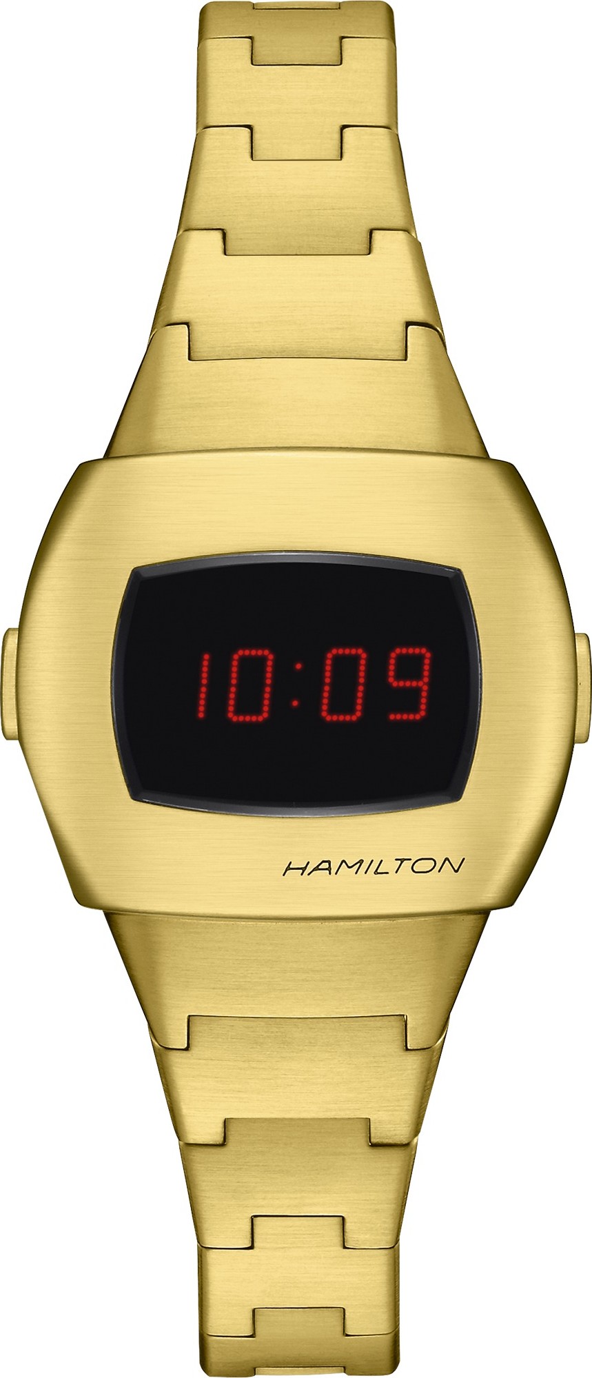 Được thiết kế lại cho hiện tại nhưng vẫn sành điệu như xưa, PSR trở lại với phong cách đặc trưng của chiếc đồng hồ kỹ thuật số đầu tiên đã làm thay đổi thế giới. Lấy cảm hứng từ hình dáng cổ điển nguyên bản của mẫu Cushion Pulsar, ra mắt lần đầu năm 1974, PSR 74 vẫn là biểu tượng của kỷ nguyên không gian. Sở hữu mô-đun thạch anh hoàn toàn mới, PSR 74 sở hữu công nghệ màn hình lai, kết hợp giữa màn hình tinh thể lỏng (LCD) phản chiếu và màn hình OLED (Điốt phát quang hữu cơ). Nút bấm giây mới được bổ sung thêm chức năng hiển thị ngày tiện lợi với số màu đỏ. Bộ máy H-40e. Bộ sưu tập American Classic. Bộ máy Quartz. Kích thước vỏ 26mm x 31mm. Độ dày (mm): 12.4. Màu mặt số: Đỏ. Chất liệu vỏ: Thép không gỉ. Lớp phủ PVD màu vàng. Mặt kính Sapphire. Chiều rộng càng: 12mm. Độ chống nước: 10 bar (100m)/145 psi (328ft). Mã dây đeo H6050000301. Loại dây đeo: Thép không gỉ. Kiểu khóa: Bướm. Chiều rộng khóa: 14mm