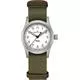 Đồng hồ Khaki Field Quartz thể hiện sự trở lại với di sản quân sự của Hamilton thông qua thiết kế đơn giản. Mặt số nổi bật với kiểu chữ rõ ràng, số Ả Rập thẳng hơn và vòng phút "kiểu đường sắt". Bảng màu được thiết kế tinh tế, với mặt số trắng bóng bẩy được tô điểm bởi các cọc số Super-LumiNova® màu radium cổ điển. Đồng hồ đi kèm dây đeo NATO bằng vải dệt màu xanh lá cây và vòng da nâu - hoàn hảo cho chuyến phiêu lưu tiếp theo của bạn trên chiến trường. Bộ máy ETA F05.105 mh2. Bộ sưu tập Khaki Field. Bộ máy Quartz. Kích thước vỏ 33mm. Độ dày (mm) 7.55. Màu mặt số Trắng. Chất liệu vỏ: Thép không gỉ. Tinh thể Sapphire. Chiều rộng càng 18mm. Độ chống nước: 5 bar (50m)/73 psi (164ft). Mã dây đeo: H6000002241. Kiểu dây đeo: Vải dệt. Kiểu khóa: Khóa cài. Chiều rộng khóa 18mm.