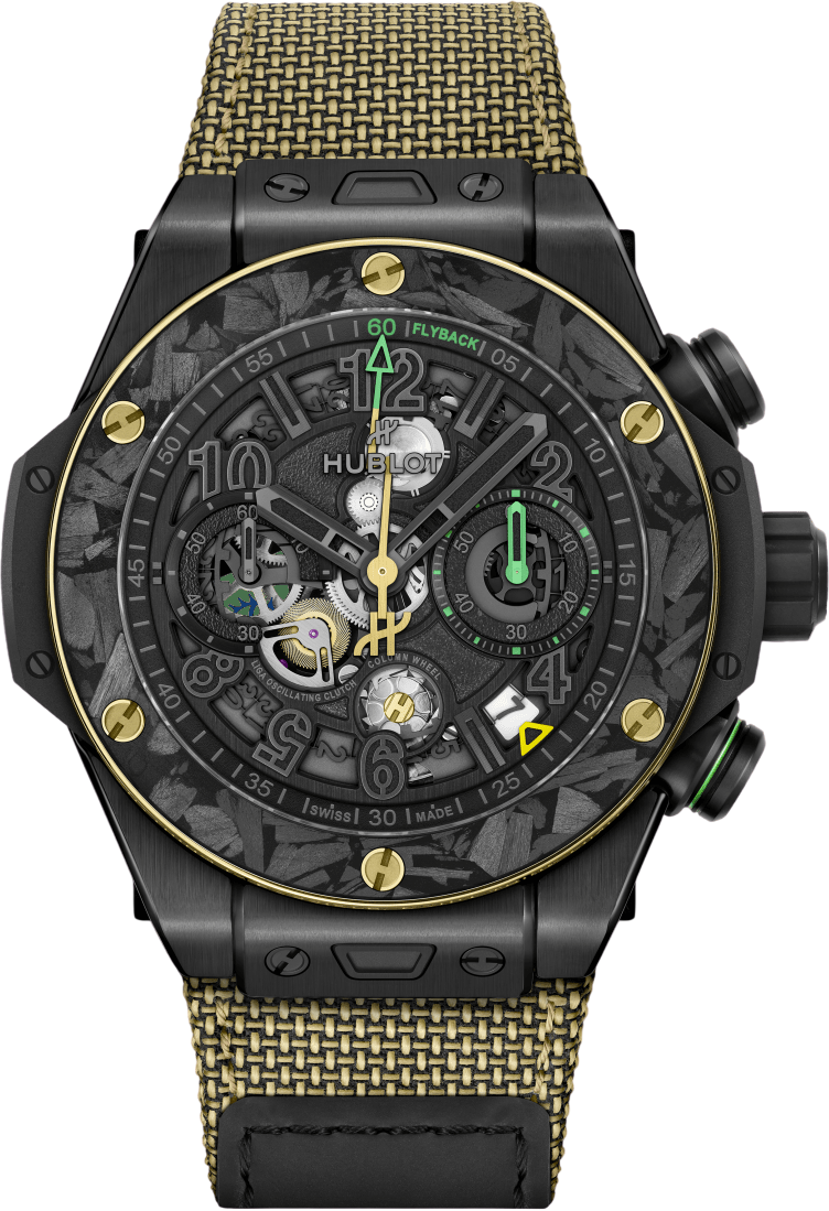 Hublot dẫn đầu xu hướng với Big Bang Reloaded Usain Bolt, phiên bản đặc biệt giới hạn 200 chiếc được chế tác cùng người đàn ông nhanh nhất lịch sử. Được phát triển song hành cùng Đại sứ thương hiệu hơn 15 năm, đây không chỉ là một chiếc đồng hồ, mà còn là một tuyên ngôn bằng chuyển động, được tái tạo chính xác và lưu giữ di sản. Được chế tác từ gốm đen và carbon 44 mm, nó gói gọn câu chuyện của Usain, từ mảnh đất Jamaica đã tôi luyện tốc độ của anh đến câu khẩu hiệu được khắc vàng trên vành bezel: “Mọi thứ đều có thể, đừng nghĩ đến giới hạn”. Một lời mời gọi hãy tin tưởng vào bản thân, nỗ lực hơn nữa và vượt qua mọi nghi ngờ. Chiếc đồng hồ này không chỉ tôn vinh người đàn ông nhanh nhất thế giới, mà còn là tư duy đã làm nên anh. Vạch đích không bao giờ là kết thúc, mà là sự khởi đầu tiếp theo! Kích thước 44 mm. Vỏ: Gốm đen mờ và đánh bóng. Viền: Vàng 18K đánh bóng, khắc dòng chữ «Anything is Possible Don’t Think Limits» với viền trên bằng sợi carbon mờ. Khả năng chống nước: 100m hoặc 10 ATM. Mặt kính: Sapphire phủ lớp chống phản chiếu. Mặt số: Kim giây chronograph hình tia sét dạng skeleton, mạ đen mờ và hoàn thiện satin. Bộ máy: HUB1280 UNICO Manufacture, tự động lên dây, chronograph flyback với bánh xe cột. Thời gian dự trữ năng lượng: Khoảng 72 giờ. Dây đeo: Vải màu vàng kim với khóa dán Velcro. Dây đeo bổ sung: Dây cao su rằn ri đen, vàng và xanh lá cây. Khóa: Khóa thể thao bằng gốm đen mài nhám.
