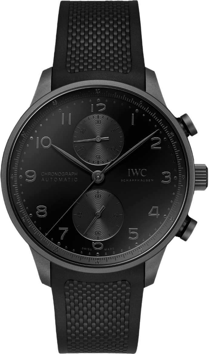 Là sự tái hiện đầy sáng tạo của một tác phẩm kinh điển vượt thời gian, chiếc đồng hồ Portugieser Chronograph Ceratanium® đánh dấu sự xuất hiện lần đầu tiên của chất liệu tối màu và bí ẩn đặc biệt này trong bộ sưu tập Portugieser. Thiết kế nguyên khối toàn màu đen được tôn lên bởi mặt số đen, các chi tiết trang trí đen, kim đen và dây đeo cao su đen có vân. Màu mặt số: Đen. Vỏ: Ceratanium®. Dây đeo: Dây đeo cao su đen. Đường kính: 41 mm. Bộ máy: Tự động, lên dây cót, do IWC sản xuất. Kim giây nhỏ có chức năng dừng kim giây. Mặt kính sapphire lồi, phủ lớp chống phản chiếu hai mặt. Chức năng chronograph với phút và giây. Chiều rộng dây đeo: 20 mm. Chiều rộng khóa: 18 mm. Vỏ: Ceratanium®. Đường kính: 41 mm. Chiều cao: 13 mm. Khả năng chống nước: 3 Bar. Mặt sau: Kính sapphire tổng hợp. Calibre: 69355. Loại bộ máy: Tự động, lên dây cót. Bộ máy do IWC sản xuất: Có. Thời gian dự trữ năng lượng: 46 giờ. Tần số: 28800 Vph (4 Hz). Số linh kiện: 205. Số chân kính: 27. Trang trí: Côtes de Genève, Perlage.