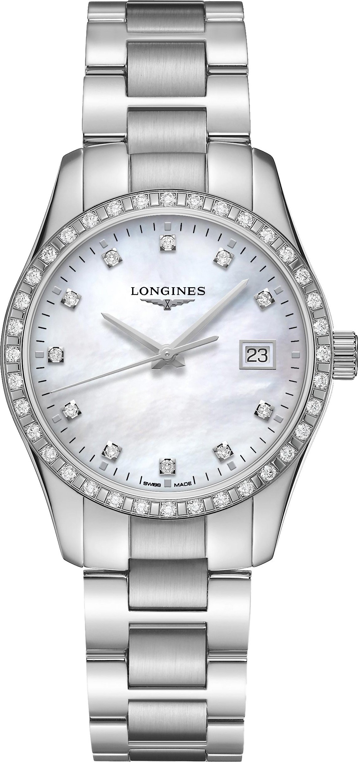 Màu sắc: Xà cừ trắng Vạch giờ: Chỉ số kim cương Kim: Kim đánh bóng bằng bạc Kim cương: Bộ mặt số được đính 11 viên kim cương Wesselton VS-SI hàng đầu, tổng trọng lượng 0,074 carat