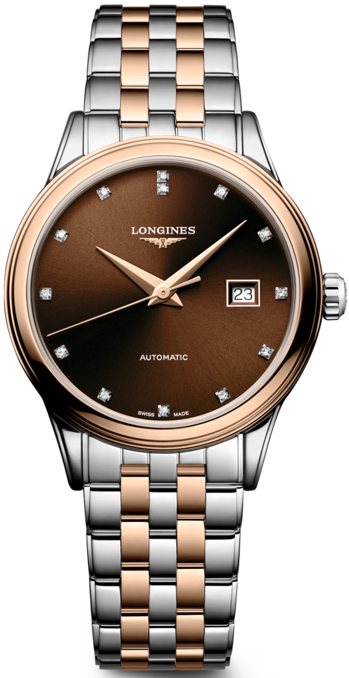 Bộ sưu tập Flagship là sự kết hợp hoàn hảo giữa truyền thống và hiện đại. Là dòng sản phẩm biểu tượng của thương hiệu kể từ cuối những năm 1950, Flagship là một trong những bộ sưu tập đầu tiên của Longines. Với sự cân bằng hài hòa giữa thiết kế cổ điển và sự thanh lịch, những chiếc đồng hồ Flagship tượng trưng cho khát vọng không ngừng nghỉ của Longines trong việc tìm kiếm sự hoàn hảo trong thế giới chế tác đồng hồ. Hình dạng Tròn. Chất liệu Thép không gỉ và lớp phủ PVD đỏ. Mặt kính Kính sapphire chống trầy xước, với nhiều lớp phủ chống phản chiếu ở mặt dưới. Mặt sau Vỏ trong suốt với kính sapphire. Kích thước 30.00 mm. Khoảng cách giữa các càng 15 mm. Khoảng cách giữa hai càng 36.40 mm. Độ dày 8.10 mm. Chống nước đến 3 bar. Trọng lượng 71.0 g. Màu mặt số Nâu tia nắng. Vạch chỉ giờ Kim cương. Kim màu hồng. Kim cương Mặt số được đính 13 viên kim cương Top Wesselton VS-SI, tổng cộng 0.034 carat. Loại máy Tự động. Chức năng Giờ, phút, giây và ngày. Caliber L592. Mô tả máy Bộ máy cơ tự động lên dây cót với tần số 28.800 dao động mỗi giờ, với lò xo cân bằng silicon đơn tinh thể dự trữ năng lượng lên đến 45 giờ. Chất liệu Thép không gỉ và Lớp phủ PVD màu đỏ. Khóa cài với chốt gập ba lớp an toàn và cơ chế mở bằng nút bấm.
