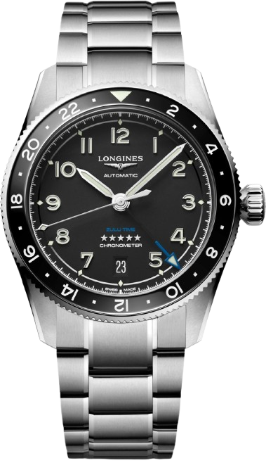 Longines Spirit Zulu Time là biểu tượng cho chuyên môn hàng thế kỷ của thương hiệu về đồng hồ đa múi giờ. Nguồn gốc và tên gọi của nó bắt nguồn từ chiếc đồng hồ đeo tay hai múi giờ Longines đầu tiên được sản xuất vào năm 1925, với hình ảnh lá cờ Zulu trên mặt số – Zulu ám chỉ chữ “Z” biểu thị giờ quốc tế dành cho phi công. Về mặt thẩm mỹ, Longines Spirit Zulu Time nổi bật với thiết kế tỉ mỉ và sự chăm chút đặc biệt đến từng chi tiết. Đồng hồ sở hữu vành bezel xoay hai chiều với miếng đệm gốm. Mỗi mẫu đều được trang bị bộ máy độc quyền của Longines, được trang bị dây tóc cân bằng silicon, chống từ trường và đạt chứng nhận Chronometer của COSC. Hình dạng Tròn. Chất liệu Thép không gỉ và vành gốm. Kính Tinh thể sapphire chống xước, với nhiều lớp phủ chống phản quang ở cả hai mặt. Kích thước 39,00 mm. Khoảng cách vấu 21 mm. Vấu này đến vấu kia 46,80 mm. Độ dày 13,50 mm. Khả năng chống nước ở độ sâu 10 bar. Đặc điểm vỏ Vành xoay hai chiều, Núm vặn vặn vít. Trọng lượng 147,0 g. Màu mặt số Đen mờ. Vạch chỉ giờ Chữ số Ả Rập được áp dụng. Kim Kim đánh bóng bằng bạc, Super-LumiNova® của Thụy Sĩ. Loại chuyển động Tự động. Chức năng Giờ, phút, giây và ngày. Kim 24 giờ với cơ chế múi giờ. Calibre L844.4. Mô tả chuyển động: Chuyển động cơ học tự lên dây cót với tần số 25.200 dao động mỗi giờ, với lò xo cân bằng silicon đơn tinh thể, dự trữ năng lượng lên đến 72 giờ. Chất liệu: Thép không gỉ. Khóa: Khóa gập an toàn kép và cơ chế mở bằng nút bấm. Khả năng thay thế: Dễ dàng thay đổi dây đeo tay/dây đeo của bạn nhờ hệ thống thay thế của Longines. Chống từ tính: Có. Đồng hồ bấm giờ được chứng nhận chính thức: Có