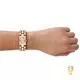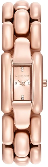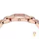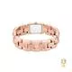 Vỏ và dây đeo bằng thép không gỉ tông vàng hồng. Vành thép không gỉ tông vàng hồng cố định. Mặt số tông vàng hồng với kim đồng hồ tông vàng hồng. Kiểu mặt số: Analog. Bộ máy Quartz. Mặt kính khoáng chống trầy xước. Núm vặn kéo/đẩy. Nắp lưng liền khối. Kiểu dáng vỏ hình chữ nhật, kích thước vỏ: 21 mm. Độ rộng dây đeo: 20 mm. Khóa cài trang sức. Khả năng chống nước ở độ sâu 50 mét / 165 feet.