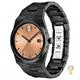 Vỏ và dây đeo bằng thép không gỉ IP màu đen. Vành bezel bằng thép không gỉ IP màu đen cố định. Mặt số tông vàng hồng với kim và vạch chỉ giờ màu đen. Vạch chỉ phút xung quanh vành ngoài. Kiểu mặt số: Analog. Hiển thị ngày ở vị trí 6 giờ. Ba mặt số phụ hiển thị: 60 giây, 30 phút và ngày. Bộ máy Quartz. Tinh thể K1 chống trầy xước. Núm vặn kéo/đẩy. Nắp lưng chắc chắn. Kiểu dáng vỏ tròn, kích thước vỏ: 42 mm. Khóa cài bằng nút bấm. Chống nước ở độ sâu 50 mét / 165 feet. Chức năng: chronograph, ngày, thứ, giờ, phút, giây.