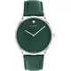 Biểu tượng của thiết kế hiện đại. Đồng hồ Movado Signature, vỏ thép không gỉ 40mm, mặt số xanh lá cây, dây da xanh lá cây, mặt kính sapphire, bộ máy thạch anh Thụy Sĩ. Mặt số màu xanh lá cây đậm, họa tiết Museum với chấm tròn phẳng. Đường kính vỏ 40. Chất liệu vỏ: thép không gỉ. Mặt kính: Sapphire. Khả năng chống nước: 30 mét. Bộ máy: Bộ máy thạch anh Thụy Sĩ. Dành cho cả nam và nữ. Dây đeo dạng vòng tay.