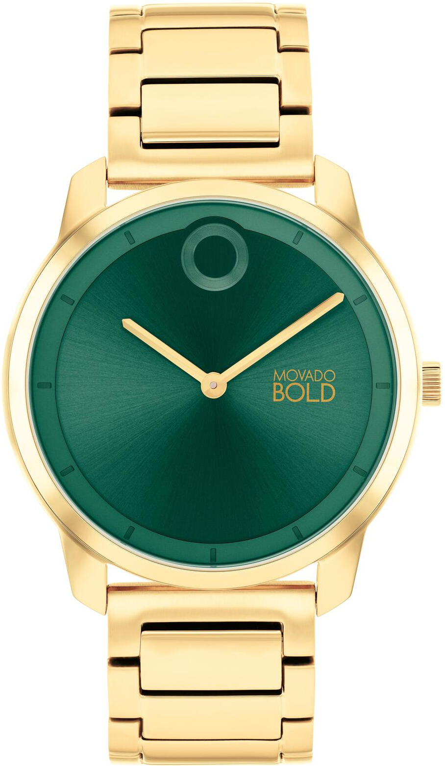 Chào đón thời gian với phong cách hiện đại trong thiết kế không thể thiếu này với dây đeo mắt xích mềm mại. Đồng hồ nam Movado Trend Element, vỏ và dây đeo mạ vàng PVD 40mm, mặt số màu xanh lá cây, kính khoáng K1, máy Thụy Sĩ. Mặt số màu xanh lá cây kiểu Museum với chấm phẳng. Đường kính vỏ 40mm. Chất liệu vỏ thép không gỉ mạ vàng ion mỏng. Kính khoáng K1. Khả năng chống nước 3 ATM. Máy quartz. Dành cho nam. Dây đeo thép không gỉ mạ vàng ion mỏng.