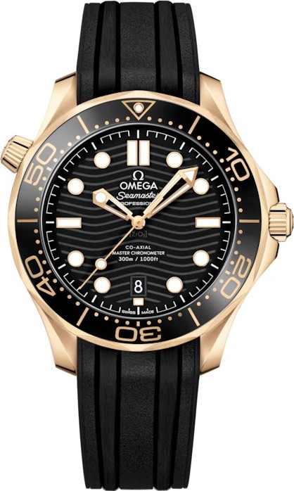 Từ năm 1993, Seamaster Diver 300M đã có một lượng người theo dõi huyền thoại. Đối với bộ sưu tập hiện đại ngày nay, OMEGA đã kế thừa di sản đại dương nổi tiếng đó và cập nhật nó với sự đổi mới và thiết kế tiên tiến nhất của thương hiệu. Mẫu 42 mm này được chế tác bằng Vàng Moonshine™ 18K và bao gồm vành gốm đen với thang lặn Ceragold™. Mặt số cũng được làm bằng gốm đen đánh bóng và có các sóng được khắc bằng laser và cửa sổ ngày ở vị trí 6 giờ. Kim và vạch chỉ giờ bằng xương được làm bằng vàng vàng 18K với xử lý PVD Vàng Moonshine™ 18K và được phủ Super-LumiNova trắng, trong khi van thoát khí heli được thiết kế hình nón. Đồng hồ được trình bày trên dây đeo cao su màu đen và được điều khiển bởi OMEGA Master Chronometer Calibre 8801, có thể nhìn thấy qua tinh thể sapphire trên nắp lưng có viền sóng. Giữa các vấu Đo lường vỏ mở Modal 20 mm. Kích thước vỏ mở Modal 49,93 mm. Độ dày vỏ mở Modal 13,72 mm. Đường kính vỏ mở Modal 42 mm. Vỏ vàng Moonshine™. Màu mặt số Đen. Kính sapphire hình vòm chống xước, phủ lớp chống phản quang ở cả hai mặt. Khả năng chống nước 30 bar (300 mét / 1000 feet). Tổng trọng lượng sản phẩm (xấp xỉ) 152 g. Bộ máy Omega 8801. Kiểu máy: Tự lên dây cót. Dự trữ năng lượng 55 giờ.