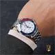 Nó được trình bày trên Dây đeo Nato polyamide 5 sọc màu xanh, đỏ và xám; và được cung cấp bởi bộ máy OMEGA Calibre 2507 độc quyền.