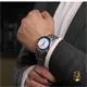 Được bọc bằng thép không gỉ và có mặt số bằng gốm trắng bóng, "Commander's Watch" nổi bật với các kim giờ hình khung xương xanh được mài nhiều mặt và kim giây màu đỏ sơn bóng với đối trọng logo súng “007”.