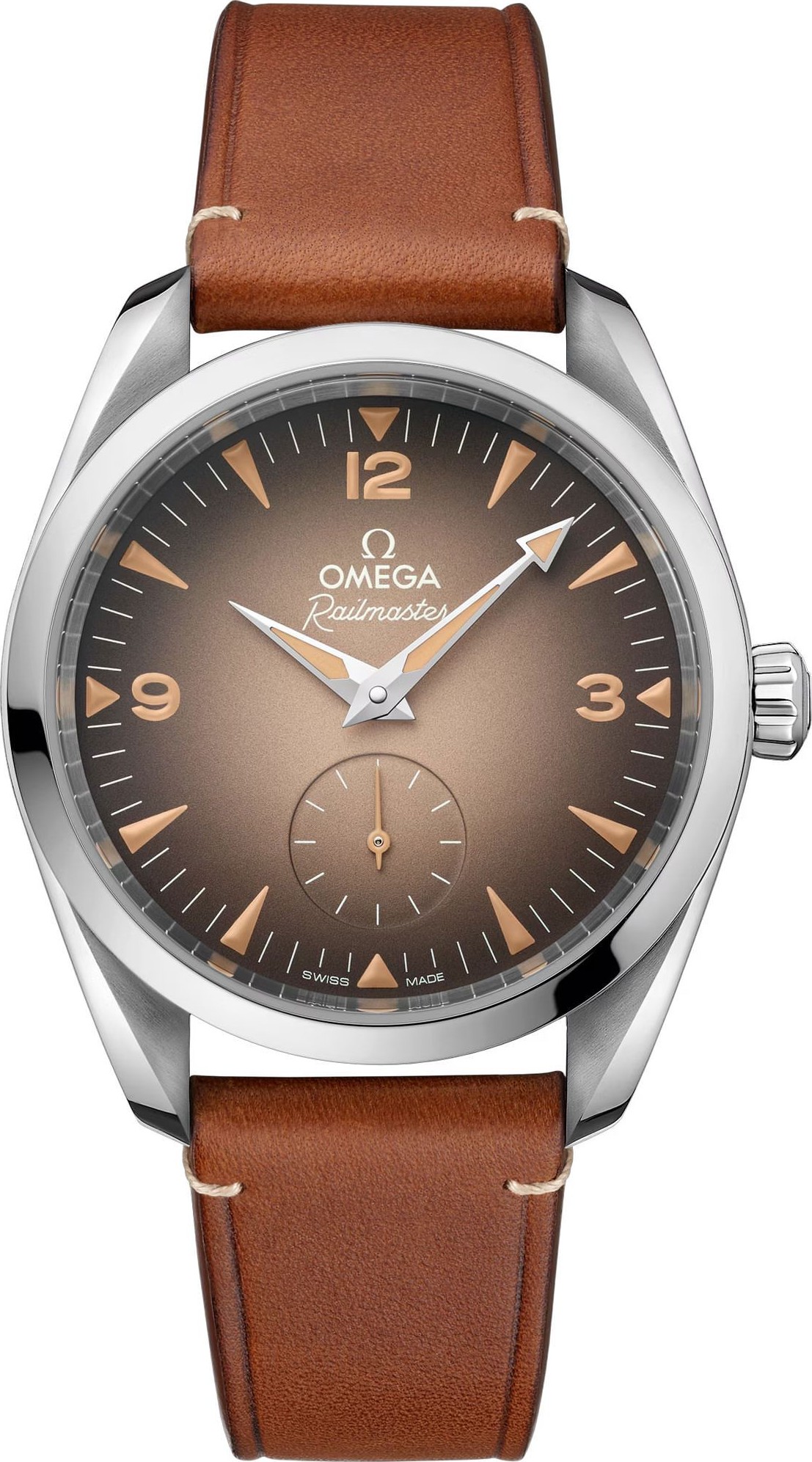 Phiên bản OMEGA Railmaster đầu tiên được ra mắt vào năm 1957 dành cho các chuyên gia làm việc trên đường sắt. Với bản cập nhật hiện đại này, OMEGA đã giữ lại vẻ ngoài vượt thời gian đó đồng thời cập nhật thiết kế với màu sắc mới và tiêu chuẩn chính xác hiện đại. Vỏ 38 mm đối xứng được chải và đánh bóng, đi kèm với dây đeo bằng da Novonappa màu nâu vàng. Để phù hợp với màn hình dễ đọc của Railmaster ban đầu, mặt số của mẫu này có màu be với hiệu ứng chuyển màu đen, với các chữ số lớn và vạch chỉ giờ được phủ lớp Super-LumiNova cổ điển. Ngoài ra còn có một màn hình hiển thị giây nhỏ ở vị trí 6 giờ, bao gồm một kim được đánh vecni màu be. Chiếc đồng hồ này tiếp tục di sản chống từ của Railmaster, nhờ vào bộ máy Co-Axial Master Chronometer Calibre 8804. Bộ máy có khả năng chống từ lên đến 15.000 gauss và có thể được nhìn thấy qua tinh thể sapphire trong suốt ở mặt sau vỏ. Giữa các vấu Mở Vỏ Đo lường Modal 19 mm. Kích thước vỏ mở Modal 44,92 mm. Độ dày vỏ mở Modal 12,36 mm. Đường kính vỏ mở Modal 38 mm. Vỏ thép. Màu mặt số Nâu. Kính sapphire hình vòm chống xước, phủ lớp chống phản quang ở cả hai mặt. Khả năng chống nước 15 bar (150 mét / 500 feet). Tổng trọng lượng sản phẩm (xấp xỉ) 80 g. Bộ máy Omega 8804. Kiểu máy: Tự lên dây cót. Dự trữ năng lượng 55 giờ.