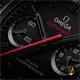 Tôn vinh di sản thám hiểm không gian của OMEGA, Speedmaster Dark Side of the Moon này có vỏ 44,25 mm bằng gốm đen đánh bóng chải xước. Vành bezel đánh bóng cũng được làm từ gốm đen và có thang đo tốc độ bằng Liquidmetal™. Bên dưới tinh thể sapphire phía trước, mặt số bằng gốm đã được phun cát bằng tia laser và bao gồm màn hình hiển thị giây nhỏ ở vị trí 9H và máy ghi 60 phút và 12 giờ ở vị trí 3H. Kim giờ và kim phút, cũng như các vạch chỉ giờ vát, đều được phủ đen và phủ Super-LumiNova màu đen (phát xạ màu xanh lá cây). Kim chronograph trung tâm được đánh vecni màu đỏ để có vẻ ngoài đặc biệt. Có thể nhìn thấy qua mặt sau của vỏ, bộ máy Co-Axial Master Chronometer Calibre 9908 lên dây cót bằng tay của OMEGA đã được hoàn thiện "phiên bản đen" đặc biệt, bao gồm tấm chính và cầu nối được đánh đen mờ, cũng như các họa tiết khắc vecni màu đen. Đồng hồ được đeo trên dây đeo cao su màu đen có họa tiết bề mặt mặt trăng ở mặt dưới, khóa gập bằng gốm và khung lò xo bằng titan phủ gốm. Khoảng cách giữa các vấu là 21 mm. Khoảng cách từ vấu này đến vấu kia là 50,00 mm. Độ dày 13,02 mm. Đường kính vỏ 44,25 mm. Vỏ bằng gốm đen. Màu mặt số Đen. Pha lê: Mặt kính sapphire chống xước được phủ lớp chống phản quang ở cả hai mặt. Khả năng chống nước 5 bar (50 mét / 165 feet). Tổng trọng lượng sản phẩm (xấp xỉ) 102 g. Bộ máy: OMEGA 9908 Black Edition. Kiểu chuyển động: Lên dây cót bằng tay. Dự trữ năng lượng 60 giờ. Màu dây đeo: Đen. Kiểu dây đeo: Dây cao su. Bề mặt dây đeo: Cao su. Mặt dưới dây đeo: Cao su. Kiểu khóa: Khóa gập. Chất liệu khóa: Gốm