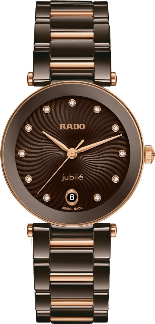 LaCoupole là sự tôn vinh dành cho những biểu tượng của ngày hôm qua, được định nghĩa lại dành cho người đeo tinh tế của ngày hôm nay. Một biểu hiện của sự quyến rũ tinh tế, được chế tác với độ chính xác và đổi mới mà chỉ Rado mới có thể mang lại. Vỏ đồng hồ monobloc 31 mm bằng gốm công nghệ cao màu nâu đánh bóng được bao phủ bởi tinh thể sapphire hình vòm, được nâng tầm bởi đường viền kim loại màu nâu và vàng hồng. Vỏ đồng hồ có khả năng chống nước ở độ sâu 5 bar (50 mét), kết hợp khả năng chống chịu hàng ngày với sự thanh lịch bền bỉ. Kết quả là một hình bóng không thể nhầm lẫn của Rado—mượt mà, điêu khắc và vượt thời gian. Mặt số màu nâu có các vạch chia hình sóng được phủ sơn mài, tạo ra hiệu ứng ba chiều xa hoa. 11 viên kim cương cắt hoàn toàn Top Wesselton đóng vai trò là vạch chỉ giờ, mang lại vẻ rực rỡ yên tĩnh cho mặt số, trong khi cửa sổ ngày ở vị trí 6 giờ mang đến chức năng tinh tế. Trái tim của nó đập nhịp nhàng với bộ máy thạch anh Calibre R218 8 chân kính, được nâng cấp bởi công nghệ PreciDrive™ cho độ chính xác vượt trội. Bảo vệ vỏ đồng hồ, dây đeo được chế tác từ gốm công nghệ cao màu nâu bóng, kết hợp với các chi tiết và móc khóa mạ vàng hồng PVD, hoàn thiện thiết kế với sự hài hòa liền mạch. LaCoupole là biểu tượng của sự duyên dáng: được thiết kế để được yêu thích và chế tác để trường tồn. Chất liệu vỏ: Gốm công nghệ cao. Đường kính vỏ: 31,0 mm. Loại máy: Quartz. Trọng lượng: 71,6g. Độ dày: 8,4 mm. Chất liệu dây đeo: Gốm công nghệ cao, Thép không gỉ / PVD