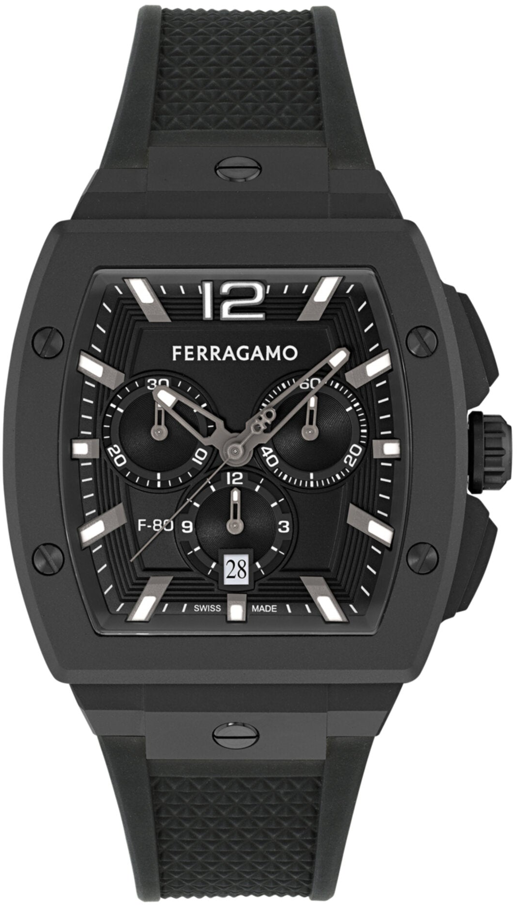 Salvatore Ferragamo F-80 Tonneau Chrono Silicone Watch 42mm
