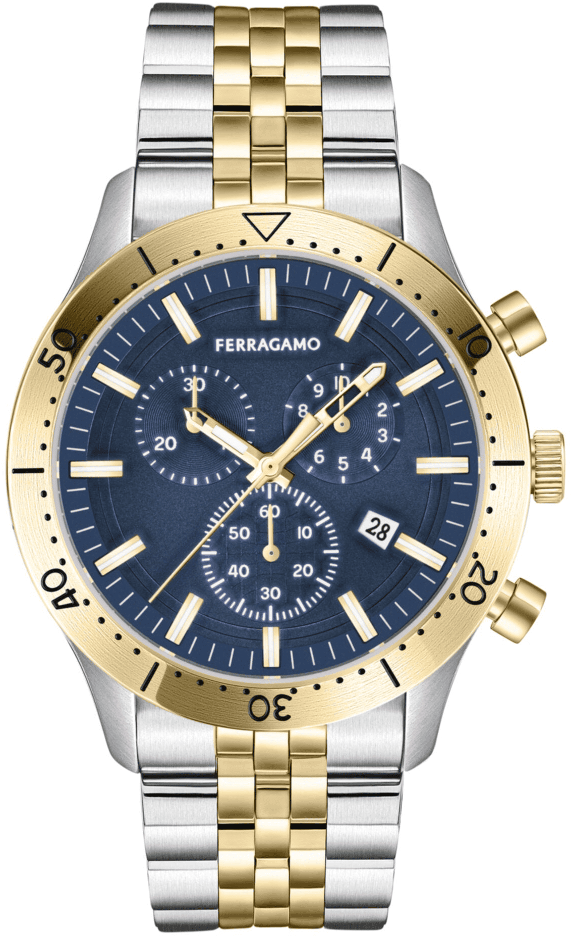 Với vẻ ngoài tinh tế và thiết kế tối giản, đồng hồ Ferragamo Master Chrono là một thiết kế kinh điển với bộ máy chronograph. Chiếc đồng hồ này có vỏ 43mm, hoàn hảo cho mọi kích cỡ cổ tay. Cho dù bạn đang chuẩn bị cho một dịp đặc biệt hay đeo hàng ngày, chiếc đồng hồ này là một phụ kiện không thể thiếu. 43mm Hai tông màu. Dây đeo hai tông màu. Mặt số Guilloche màu xanh lam. Chống nước 5 ATM. Khóa gập. Bộ máy thạch anh chronograph ngày sản xuất tại Thụy Sĩ.