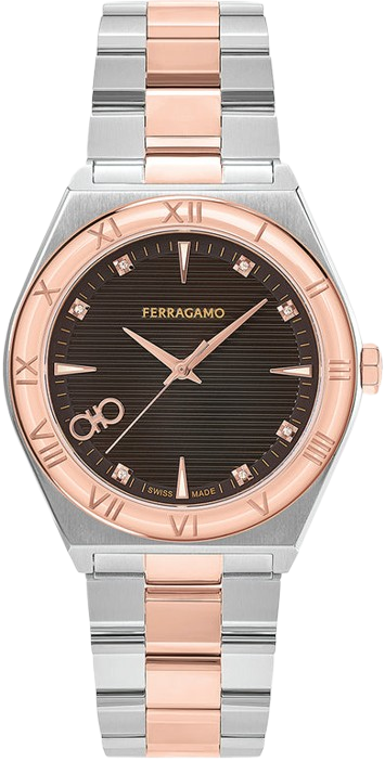 Kích thước vỏ 40 mm. Hình dạng đồng hồ tròn. Dây đeo/Dây đeo tay. Số lượng chân kính 7. Khu vực sản xuất: Thụy Sĩ. Đặc điểm: Sản xuất tại Thụy Sĩ. Bộ máy: 3 kim Quartz. Màu mặt số: Nâu. Dây đeo màu hai tông màu. Màu vành: Vàng hồng. Màu vỏ: Bạc. Chất liệu dây đeo: Thép không gỉ. Màn hình: Analog. Chất liệu vỏ: Thép không gỉ. Khả năng chống nước: 50 m (5 ATM). Chiều rộng dây đeo: 20 mm. Chiều rộng càng: 20Độ dày vỏ 8,80 mm. Chất liệu kính Kính Sapphire
