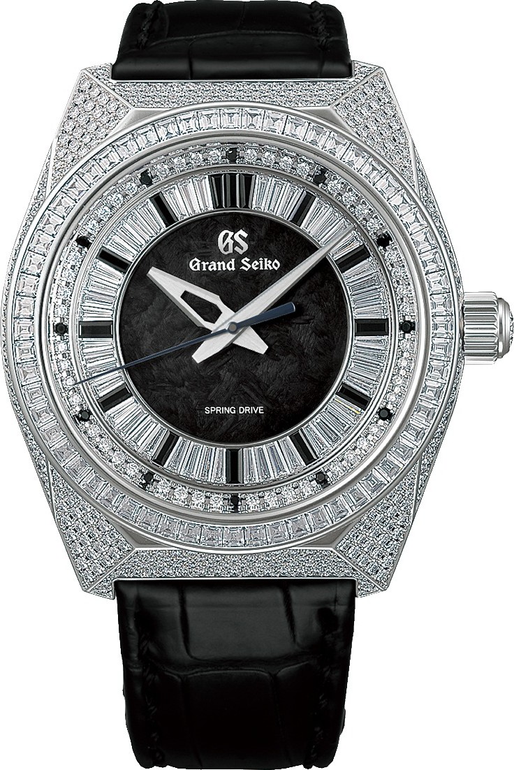 Phiên bản giới hạn 8 chiếc. Mạnh mẽ, uy nghiêm và vương giả, sư tử là biểu tượng trường tồn của Grand Seiko, mang theo tinh thần kiên định thể hiện rõ trong việc công ty không ngừng theo đuổi chế tác đồng hồ tốt nhất có thể kể từ khi thành lập vào năm 1960. Nguồn cảm hứng của chiếc đồng hồ, chú sư tử xuất hiện từ bóng tối, được thể hiện qua hơn 600 viên kim cương trang trí vỏ, mặt số, vành và núm điều chỉnh để tạo nên sự hiện diện mạnh mẽ và uy nghiêm. Khung pavé mang lại ánh sáng lấp lánh rực rỡ dọc theo các đường gờ, làm nổi bật hình dáng tinh tế của vỏ. Sự rực rỡ này càng được tăng cường hơn nữa khi đặt những viên kim cương cạnh nhau với spinel đen, thể hiện mạnh mẽ khái niệm ánh sáng và bóng tối rất quan trọng đối với thiết kế của Grand Seiko. Bộ máy cung cấp năng lượng cho kiệt tác trang sức cao cấp này là Spring Drive Calibre 9R01, được tạo ra bởi những người đàn ông và phụ nữ lành nghề của Micro Artist Studio. Ba thùng cót của nó được sắp xếp theo chuỗi cho phép hoạt động liên tục lên đến tám ngày (khoảng 192 giờ). Mặt ngoài: Bạch kim. Mặt sau: Trong suốt & Nắp lưng vặn vít. Chất liệu kính: Tinh thể sapphire cong kép. Lớp phủ kính: Lớp phủ chống phản chiếu trên bề mặt bên trong. Kích thước vỏ: Đường kính 44,5mm. Khoảng cách từ vấu này đến vấu kia là 52,0mm. Độ dày 14,4mm. Chiều rộng dây đeo: 23mm. Chất liệu dây đeo: Da cá sấu. Kiểu khóa: Khóa gập ba với nút bấm mở. Mã số bộ máy: 9R01. Kiểu bộ máy: Spring Drive Lên dây cót bằng tay. Dự trữ năng lượng: Xấp xỉ. 192 giờ (8 ngày). Độ chính xác: ±10 giây mỗi tháng (±0,5 giây mỗi ngày). Khả năng chống nước: 10 bar. Độ kháng từ: 4.800 A/m. Vỏ đính kim cương. Số sê-ri được khắc ở mặt sau. Mặt số đính kim cương và đá spinel đen. Núm vặn đính kim cương. Khóa bạch kim 950 (một phần vàng trắng 18k). 26 viên đá spinel đen (0,88 carat). 649 viên kim cương (8,04 carat). 56 chân kính. Chỉ báo dự trữ năng lượng. Chức năng điều chỉnh chênh lệch thời gian