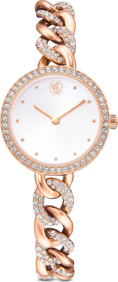 Mang dáng vẻ cổ điển pha chút hiện đại, đồng hồ Cocktail Round của Swarovski nổi bật với mặt đồng hồ tròn 25mm kết hợp cùng dây đeo dạng mắt xích. Được chế tác từ thép không gỉ với lớp hoàn thiện mạ vàng hồng, chiếc đồng hồ này gây ấn tượng với viền được đính 49 viên pha lê, mặt số tối giản kiểu tia nắng và khoảng 150 viên pha lê khác được đính trên các mắt xích của dây đeo. Có khả năng chống nước đến 50m, đây là một thiết kế vượt thời gian mang đến vẻ thanh lịch bất tận. Mã sản phẩm: 5732763. Bộ sưu tập: Cocktail. Kích thước vỏ: 7/8 x 7/8 inch. Độ dày vỏ: 1/4 inch. Chiều dài dây đeo có thể đeo (tối thiểu - tối đa): 6 1/8 - 6 7/8 inch. Chiều rộng dây đeo: 3/8 inch. Chất liệu: Pha lê, lớp phủ PVD mạ vàng hồng, thép không gỉ. Màu sắc: Vàng hồng. Loại khóa: Khóa gập. Chất liệu dây đeo: Kim loại. Cơ chế: Thạch anh.