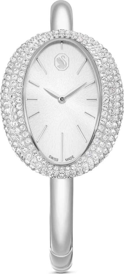Với sự tinh tế trong tỷ lệ, chiếc đồng hồ Imber Bangle này mang đến một kiểu dáng tuyệt đẹp bằng thép không gỉ. Vỏ hình bầu dục có viền được đính khoảng 321 viên pha lê, tạo nên khung lấp lánh cho mặt số tia nắng của đồng hồ. Trên cổ tay, một chiếc vòng tay mảnh mai và có thể điều chỉnh bằng thép không gỉ mang lại sự thoải mái và phong cách suốt cả ngày. Chiếc đồng hồ sản xuất tại Thụy Sĩ này có khả năng chống nước ở độ sâu 50 mét và kết hợp hoàn hảo với trang sức Imber của Swarovski. Bộ sưu tập: Imber. Kích thước vỏ: 1 3/8 x 1 1/8 inch. Độ dày vỏ: 3/8 inch. Chiều dài dây đeo có thể đeo (tối thiểu - tối đa): 6 1/8 - 7 1/4 inch. Chiều rộng dây đeo: 1/4 inch. Chất liệu: Pha lê, Thép không gỉ. Màu sắc: Tông màu bạc. Loại khóa: Khóa gập. Chất liệu dây đeo: Kim loại. Sản xuất tại: Thụy Sĩ. Cơ chế: Thạch anh.