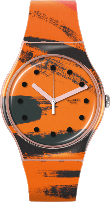 Chiếc đồng hồ này thuộc Bộ sưu tập Swatch x Tate Gallery, sở hữu họa tiết tác phẩm nghệ thuật Orange and Red on Pink của Wilhelmina Barns-Graham trên mặt số, vỏ và dây đeo màu hồng nhạt mờ. Các vạch chỉ giờ màu đen được in trên mặt kính, kim giờ và kim phút màu hồng cùng kim giây màu trắng hiển thị thời gian. Vòng lặp mờ trong suốt được in logo Tate Gallery. Wilhelmina Barns-Graham Orange and Red on Pink 1991. © Wilhelmina Barns-Graham Trust. Ảnh: Tate / © Tate. Bộ máy: Thạch anh. Chống nước: 3 Bar. Bộ sưu tập: SWATCH X TATE GALLERY. Bao bì: Đặc biệt. Đường kính: 41,00 mm. Độ dày: 9,85 mm. Khoảng cách giữa các vấu: 47,40 mm. Chất liệu dây đeo: Silicone. Chất liệu khóa: Polymer. Khóa dây đeo: Khóa cài. Chất liệu vỏ: Polymer. Màu sắc: Hồng. Màu dây đeo: Hồng. Màu mặt số: Cam. Màu vỏ: Hồng. Dòng sản phẩm: ORIGINALS
