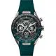 Đồng hồ TAG Heuer Carrera Chronograph Extreme Sport Twin-Time tái định nghĩa hiệu suất với thiết kế lấy cảm hứng từ môn thể thao đua xe. Với vẻ ngoài màu xanh mòng két đậm và công nghệ tiên tiến, chiếc đồng hồ 44mm này là minh chứng cho sự kết hợp táo bạo giữa kỹ thuật chính xác và phong cách của Swiss Maison. Calibre TH20-02. Bộ máy Tự động. Bộ máy nội bộ Có. Dự trữ năng lượng (giờ) 80. Tần số cân bằng 28800 (4Hz). Chức năng Giờ, Phút, Giây, Ngày, GMT, Chronograph: 1/4 giây, bộ đếm 15 phút, bộ đếm 12 giờ. Kích thước 44 mm. Khả năng chống nước 100 m. Vỏ Titanium được chải mịn/phun cát. Núm điều chỉnh Titanium loại 2. Mặt sau Sapphire - Titanium loại 2. Chất liệu dây đeo Cao su Màu xanh lá cây. Khóa gập Khóa an toàn kép - Titanium loại 2. Mặt số Màu Rhodium Đen