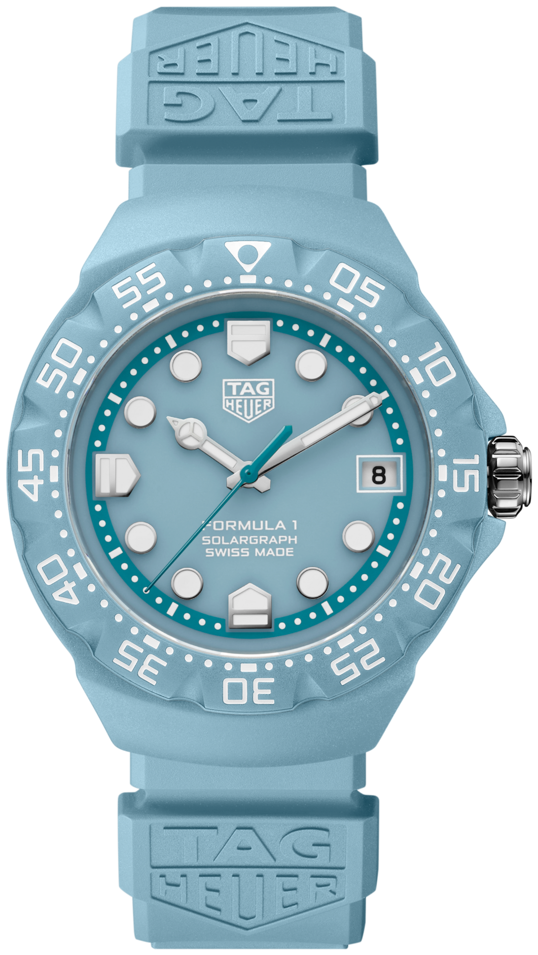 Đồng hồ TAG Heuer Formula 1 Solargraph kết hợp màu sắc táo bạo với hiệu năng nhẹ nhàng. Vỏ TH-Polylight 38 mm đảm bảo độ bền mà vẫn thoải mái khi đeo hàng ngày. Mặt số màu xanh lam nhạt có các vạch chỉ giờ mạ rhodium và các vạch hình khiên đặc trưng cho khả năng đọc giờ tuyệt vời. Vòng bezel TH-Polylight xoay hai chiều làm nổi bật thiết kế năng động của bộ sưu tập. Bên trong, bộ máy Solargraph Calibre TH50-00 chuyển đổi ánh sáng tự nhiên và nhân tạo thành năng lượng, mang lại độ chính xác đáng tin cậy và thời gian hoạt động kéo dài với bảo trì tối thiểu. Caliber: TH50-00. Bộ máy: Thạch anh năng lượng mặt trời. Chức năng: Giờ, phút, giây, ngày. Thông tin thêm về TH50-00: Bộ máy Solargraph Calibre TH50-00 là bộ máy thạch anh hoạt động hoàn toàn bằng ánh sáng. Bằng cách chuyển đổi cả ánh sáng tự nhiên và nhân tạo thành năng lượng, nó liên tục sạc lại trong quá trình sử dụng hàng ngày. Một lần sạc đầy cung cấp thời gian hoạt động lên đến 10 tháng, trong khi chỉ cần tiếp xúc ngắn với ánh sáng có thể cung cấp năng lượng cho đồng hồ cả ngày. Được thiết kế để bền bỉ, bộ máy có tuổi thọ pin lên đến 15 năm, giảm thiểu bảo trì đồng thời đảm bảo độ chính xác ổn định và hiệu suất đáng tin cậy. Kích thước vỏ: 38 mm. Độ dày: 10,2 mm. Khoảng cách giữa các càng: 42 mm. Khả năng chống nước: 100 m. Vỏ: TH-Polylight được xử lý phun cát. Vòng bezel: Vòng bezel xoay. Chất liệu vòng bezel: TH-Polylight. Núm vặn: Thép. Mặt sau vỏ: Trơn - Thép. Chất liệu dây đeo: Cao su. Màu sắc: Xanh lam. Khóa: Khóa ghim - Thép. Hoàn thiện mặt số: Opalin. Màu sắc: Xanh lam. Vạch chỉ giờ: Được gắn nổi.