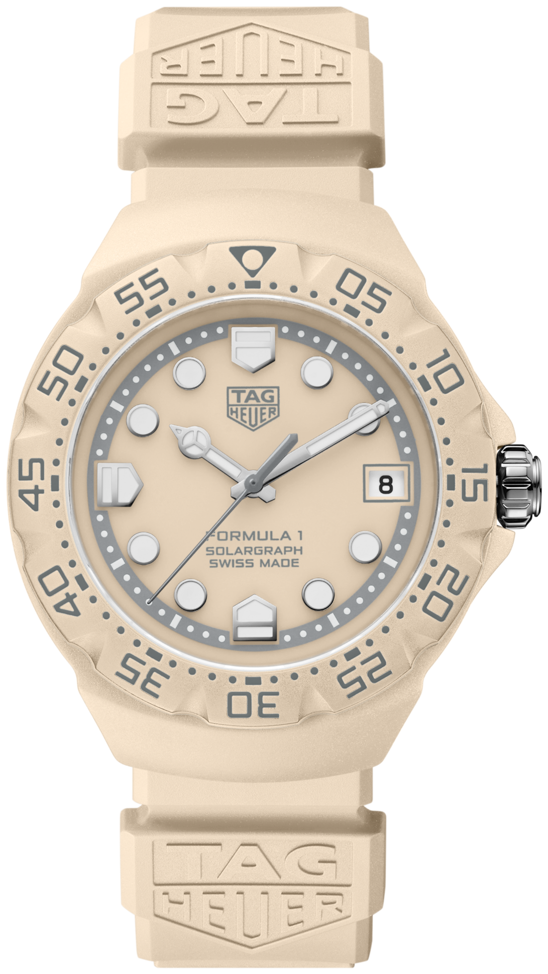 Chiếc đồng hồ TAG Heuer Formula 1 Solargraph phiên bản giới hạn này kết hợp thiết kế độc đáo với hiệu năng sử dụng hàng ngày. Vỏ TH-Polylight nhẹ 38 mm mang lại độ bền cao đồng thời vẫn cực kỳ thoải mái trên cổ tay. Mặt số màu be có các vạch chỉ giờ mạ rhodium và các vạch chỉ giờ hình khiên đặc trưng của bộ sưu tập giúp dễ dàng đọc giờ. Vòng bezel TH-Polylight xoay hai chiều nhấn mạnh cam kết của bộ sưu tập về thiết kế chức năng. Được trang bị bộ máy Solargraph Calibre TH50-00, chiếc đồng hồ này chuyển đổi ánh sáng thành năng lượng để đảm bảo độ chính xác và khả năng hoạt động lâu dài. Calibre: TH50-00. Bộ máy: Thạch anh năng lượng mặt trời. Chức năng: Giờ, Phút, Giây, Ngày. Thông tin thêm về TH50-00: Bộ máy Solargraph Calibre TH50-00 là bộ máy thạch anh hoạt động hoàn toàn bằng ánh sáng. Bằng cách chuyển đổi cả ánh sáng tự nhiên và nhân tạo thành năng lượng, nó liên tục sạc lại trong quá trình sử dụng hàng ngày. Một lần sạc đầy cung cấp khả năng hoạt động lên đến 10 tháng, trong khi chỉ cần tiếp xúc ngắn với ánh sáng có thể cung cấp năng lượng cho đồng hồ cả ngày. Được thiết kế để bền bỉ, bộ máy có tuổi thọ pin lên đến 15 năm, giảm thiểu bảo trì đồng thời đảm bảo độ chính xác ổn định và hiệu suất đáng tin cậy. Kích thước vỏ: 38 mm. Độ dày: 9,9 mm. Khoảng cách giữa các càng: 18,5 mm. Khả năng chống nước: 100 m. Vỏ: TH-Polylight được xử lý phun cát. Vòng bezel: Vòng bezel xoay. Chất liệu vòng bezel: TH-Polylight. Núm vặn: Thép. Mặt sau vỏ: Trơn - Thép. Chất liệu dây đeo: Cao su. Màu sắc: Màu be. Khóa: Khóa ghim - Thép. Mặt số: Hoàn thiện Opalin. Màu sắc: Màu be. Vạch chỉ giờ: Được gắn nổi.